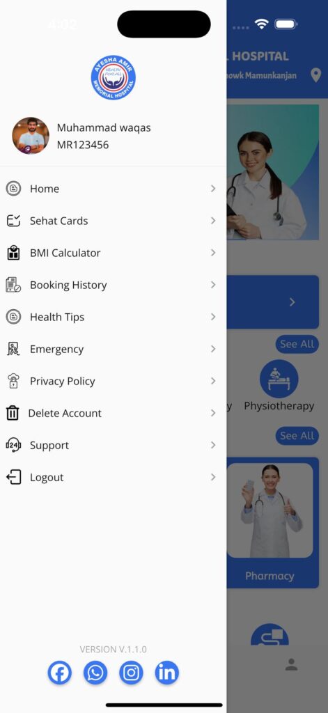 Open the Ayesha Amir Memorial Hospital App on your mobile device.